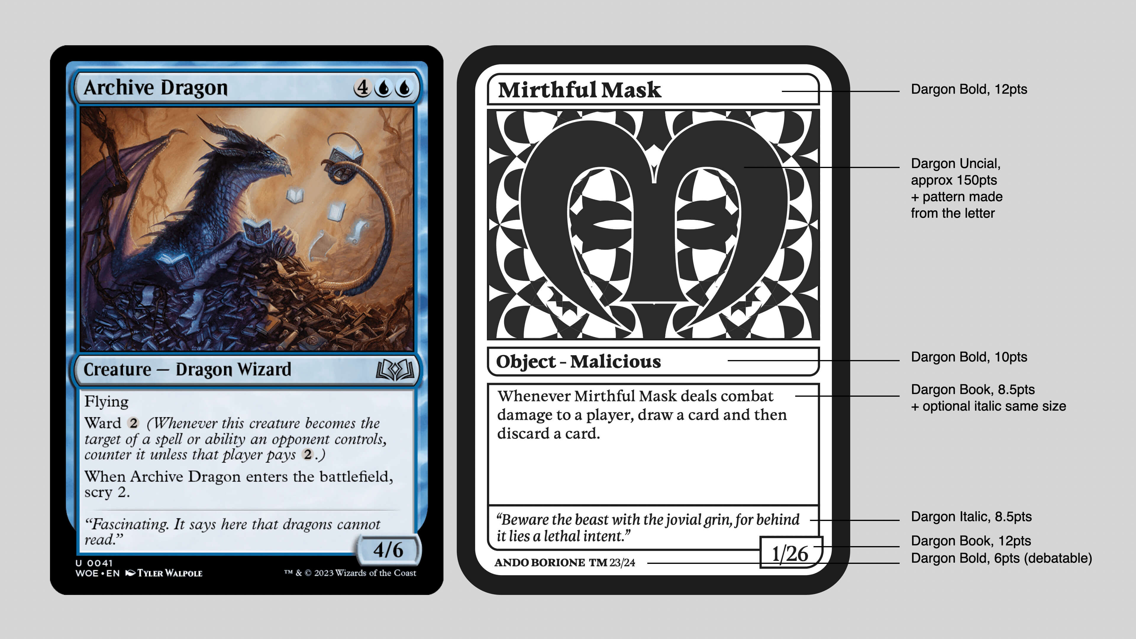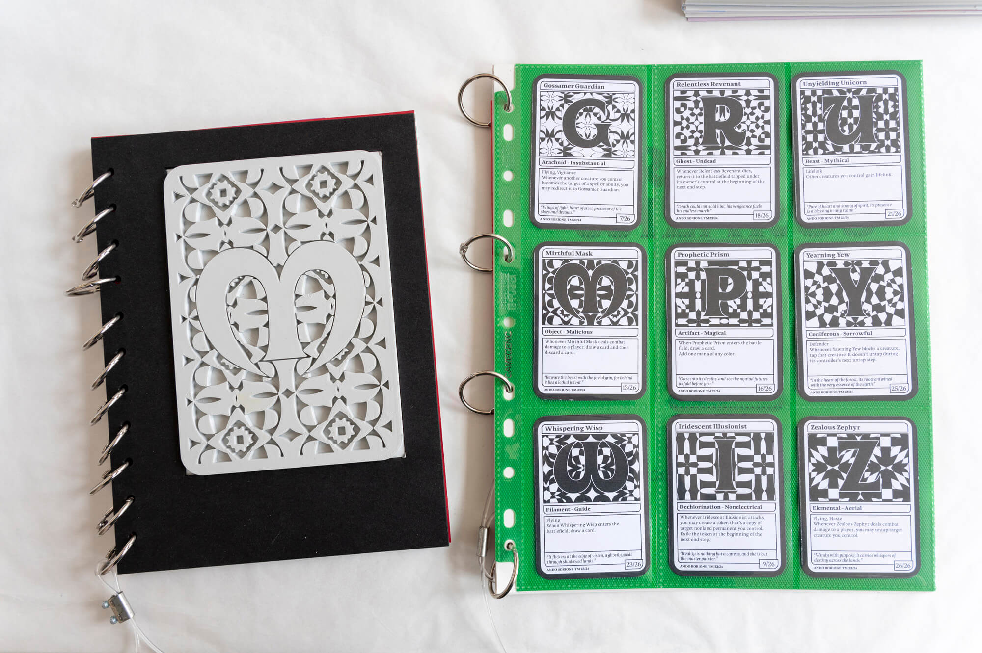When it came to making the process book and specimen, I knew I wanted something related to my main application, collectible playing cards.