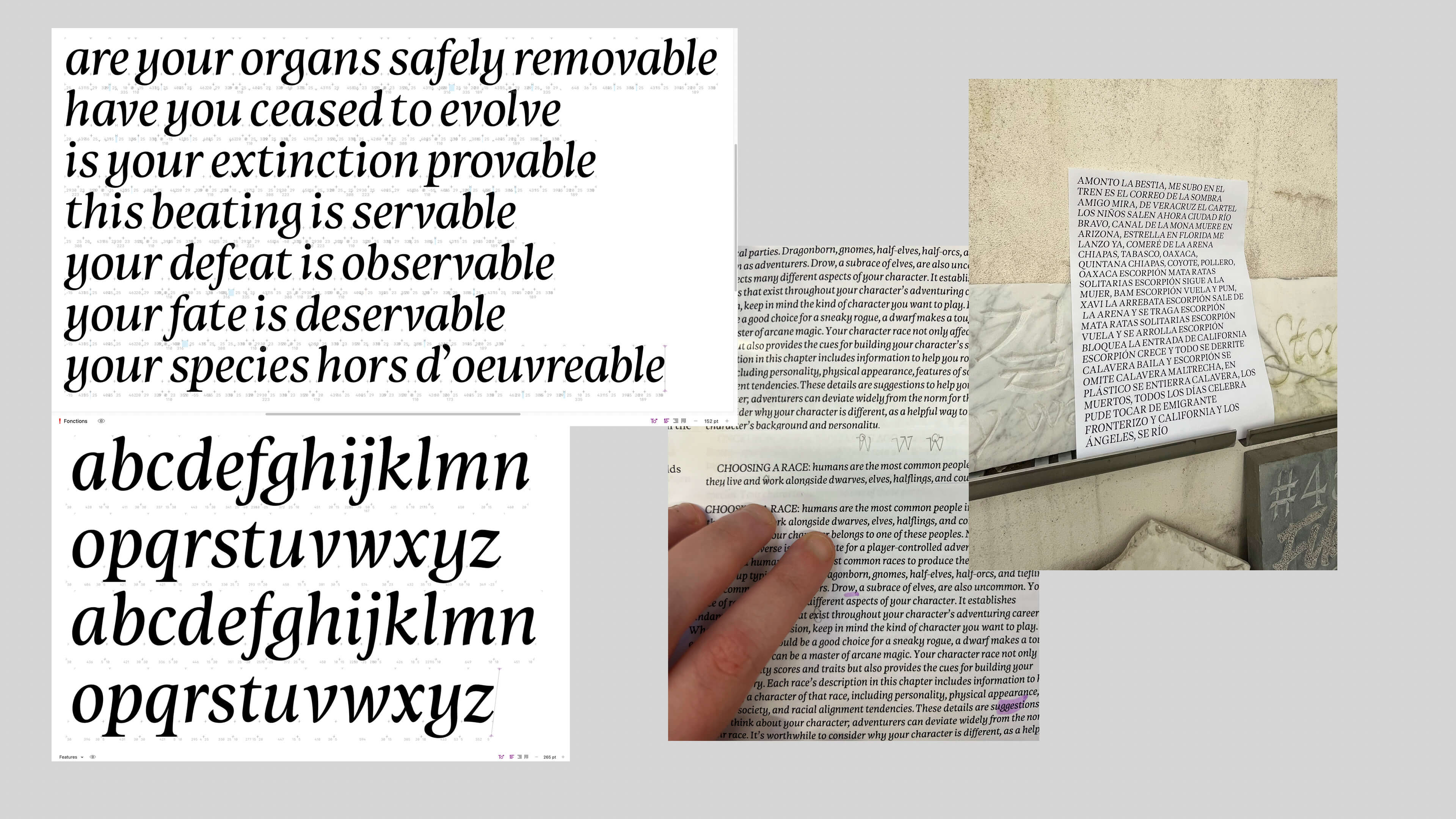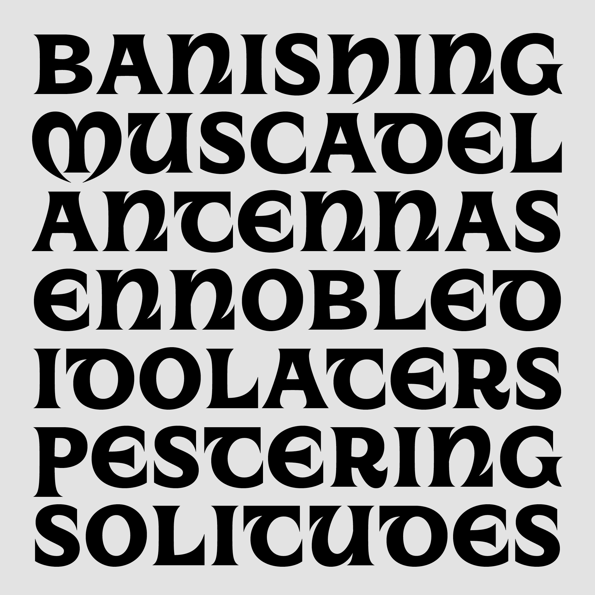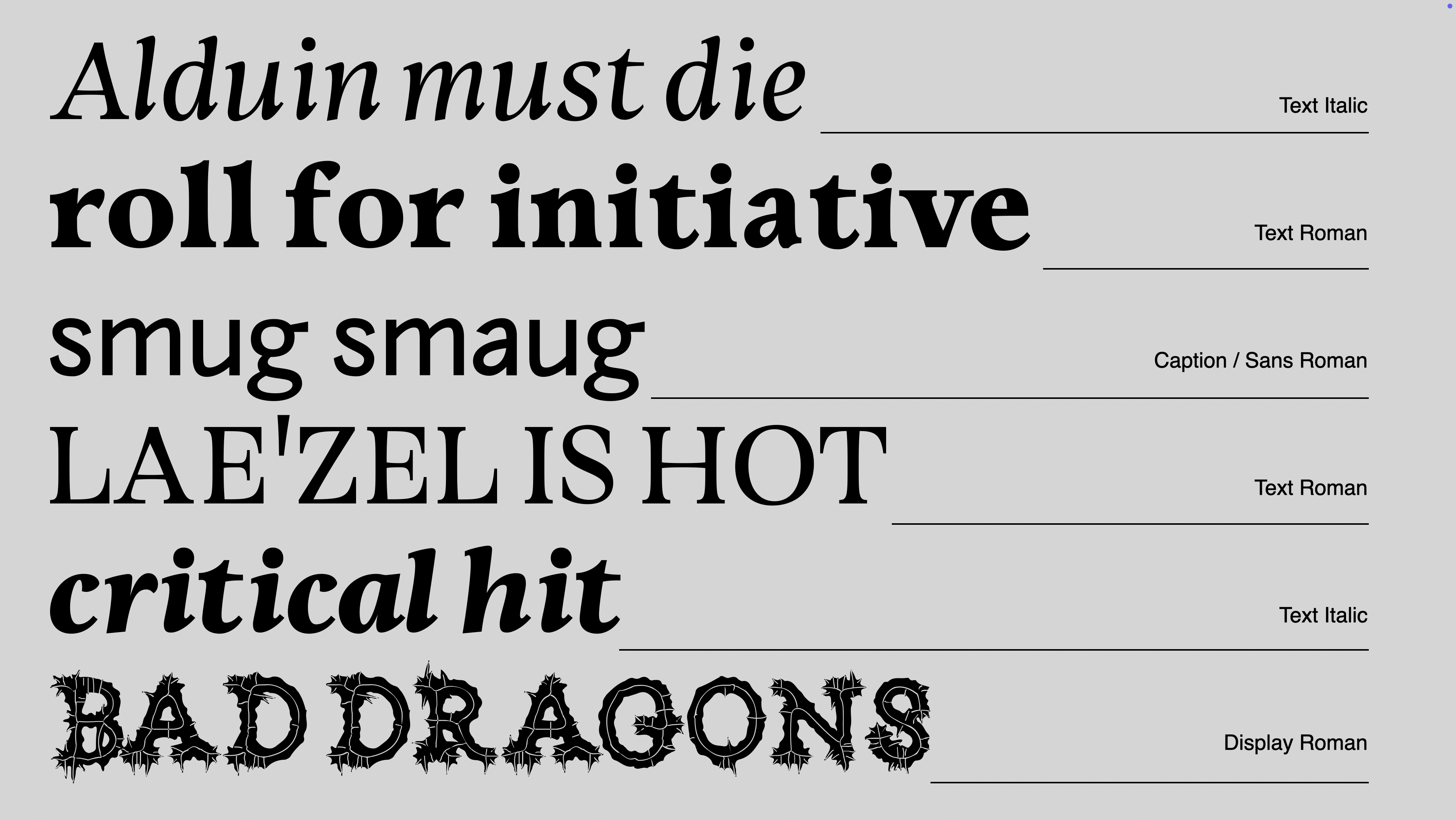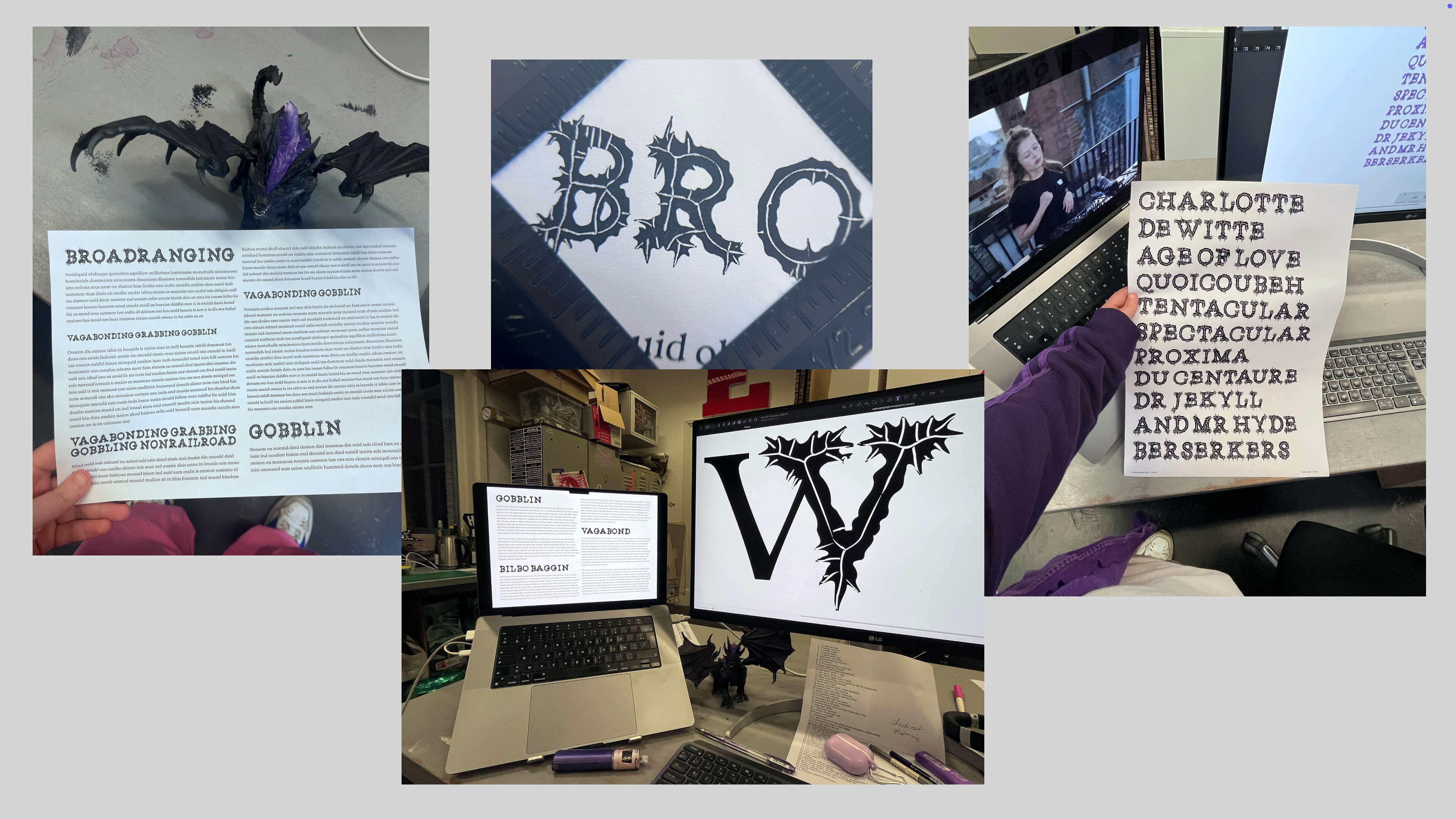 In the land of Gods and Monsters, type is a fantasy. Type is an artistic endeavour. Type is a world. Fantasy is my escapism. I find immense comfort in the imaginary worlds I create, in my mind and in type. It is not that reality is not fulfilling; type enhances it. Type is a conduit for enchantment. For enchanting myself. A portal to realms yet unseen. Type design is creating letters. Letters make words, make sentences, make texts, make books, make worlds, and universes. Shapes of letters matter as much as the meaning of the words they compose. They are as much of a vessel for storytelling than the images the words invoke.