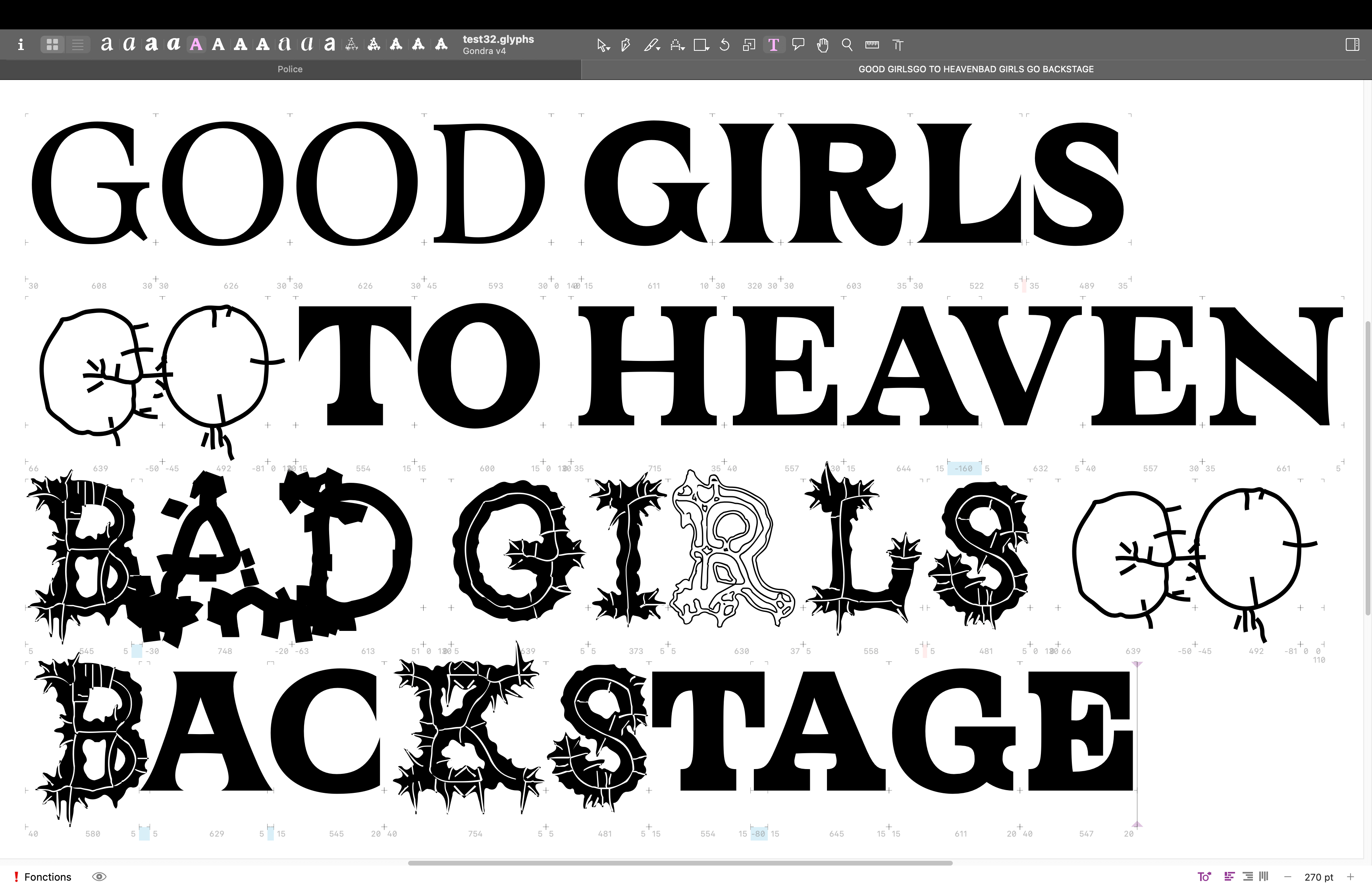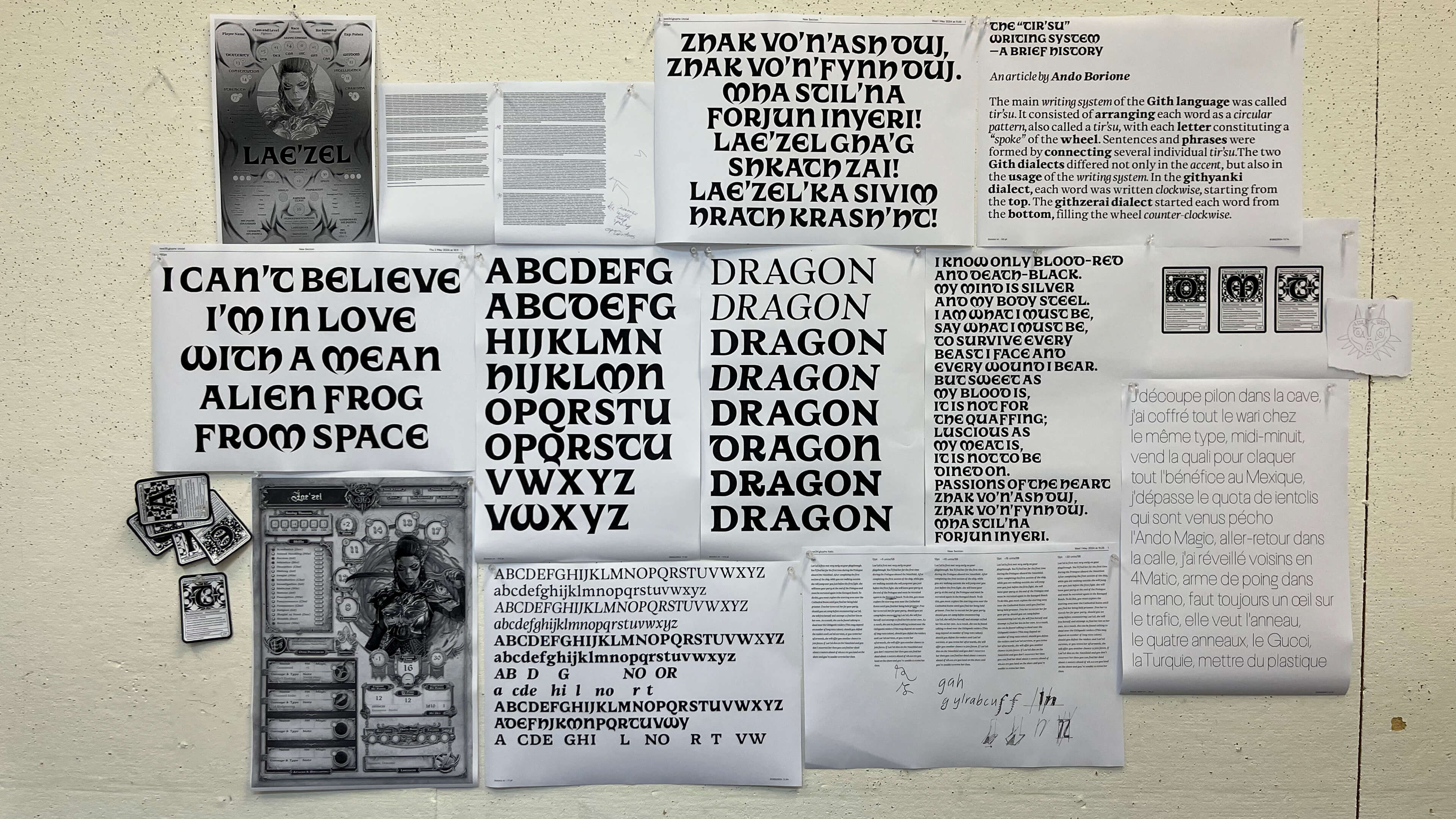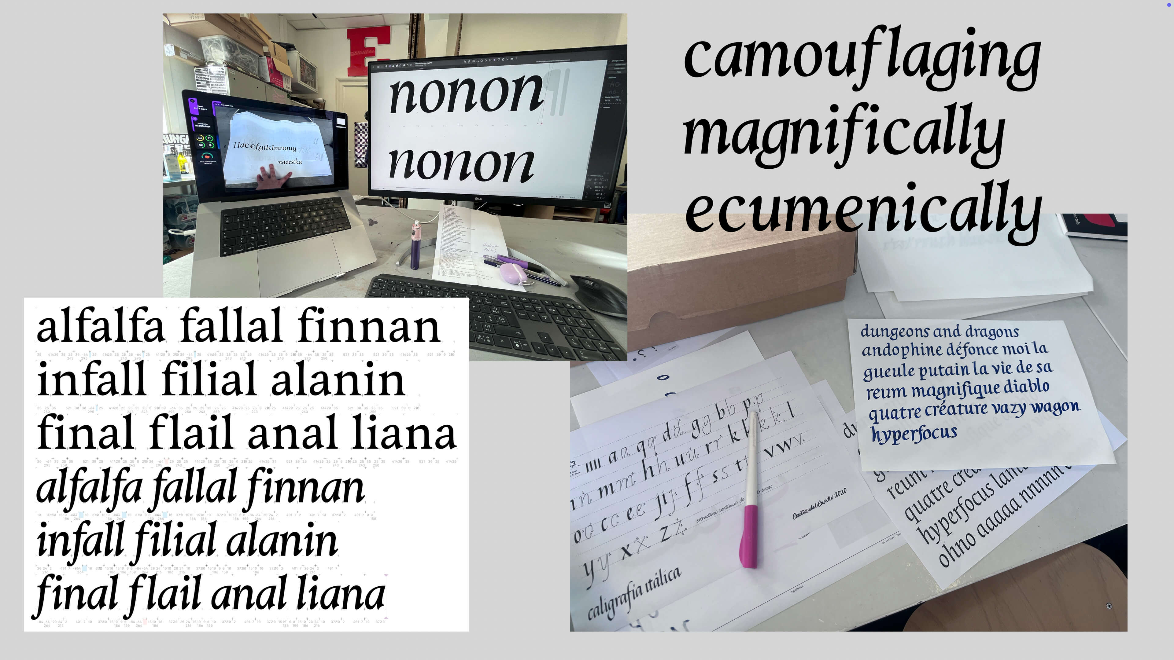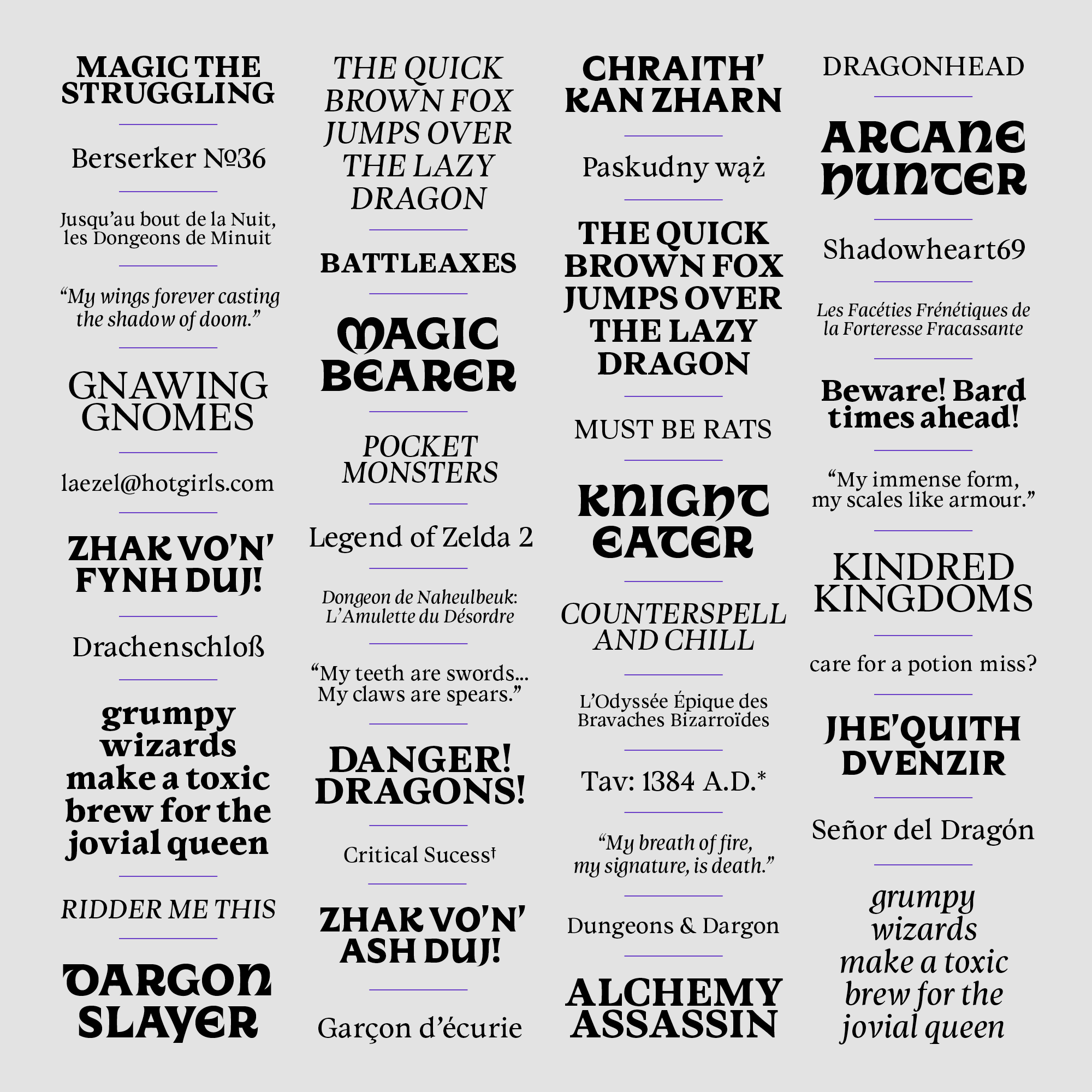 In the land of Gods and Monsters, type is a fantasy. Type is an artistic endeavour. Type is a world. Fantasy is my escapism. I find immense comfort in the imaginary worlds I create, in my mind and in type. It is not that reality is not fulfilling; type enhances it. Type is a conduit for enchantment. For enchanting myself. A portal to realms yet unseen. Type design is creating letters. Letters make words, make sentences, make texts, make books, make worlds, and universes. Shapes of letters matter as much as the meaning of the words they compose. They are as much of a vessel for storytelling than the images the words invoke.