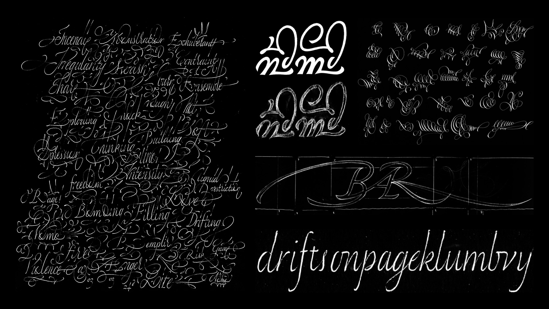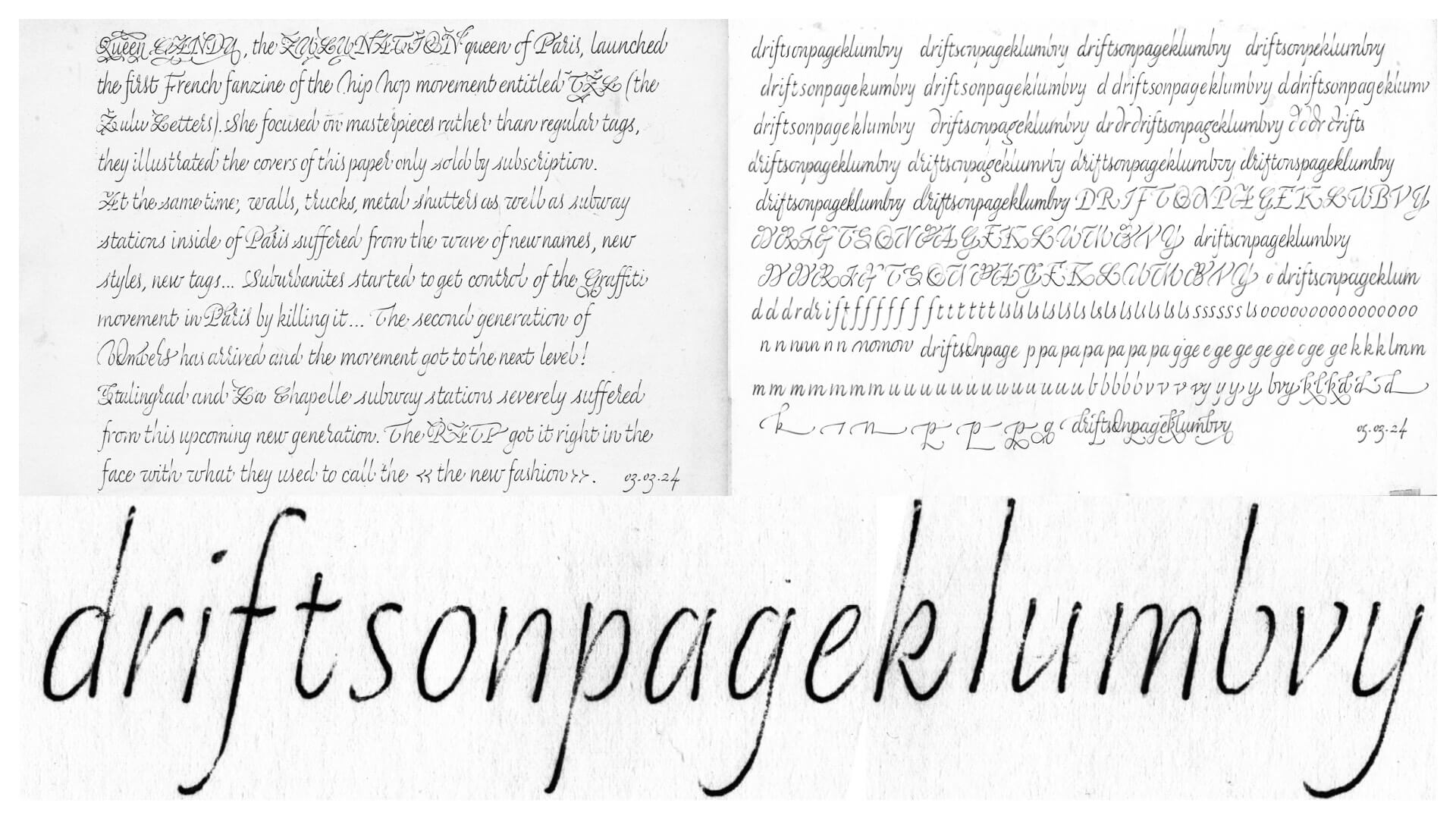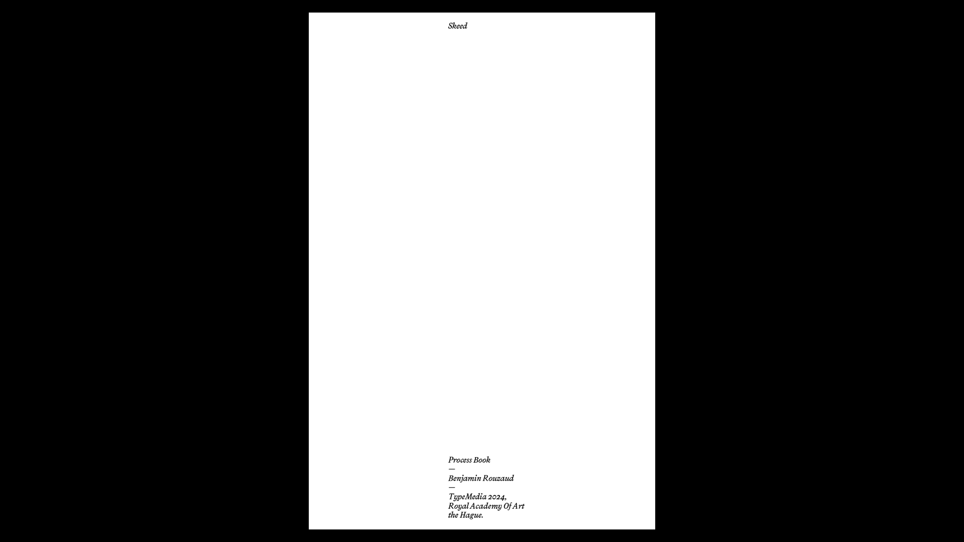 Skeed is an exploration rooted in the use of a simple ballpoint pen where Benjamin embraced physicality and intuition to uncover unexpected letterforms shaped by movement and sensation. Throughout the programme, he engaged in writing exercises to navigate the balance between formal/informal structures. This process marked a shift from a purely instinctive calligraphic practice to a more methodical design approach revealing a fundamental tension between the practice of the hand and the practice of digital design.