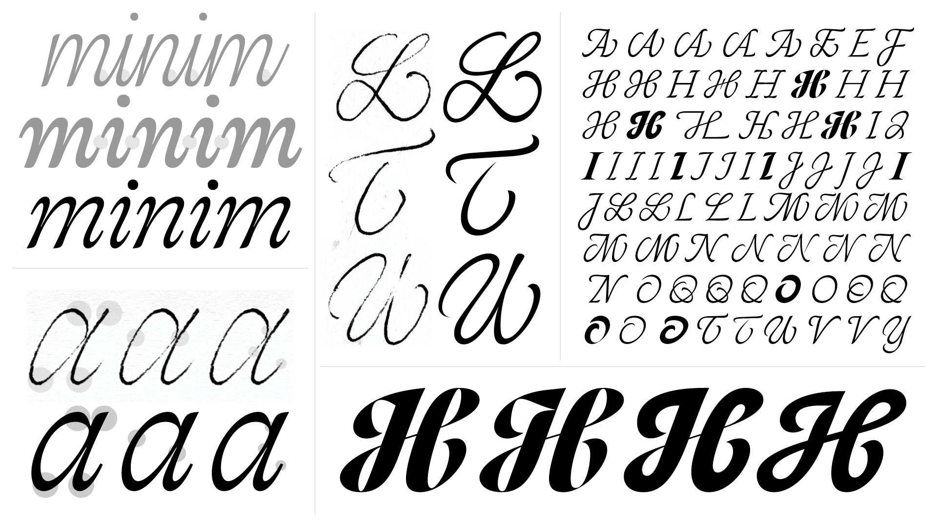 To find the right direction Benjamin first had to accept that digital tools would inevitably change the feeling of the ballpoint pen calligraphy, so the goal became to capture the gesture rather than replicate it exactly. He focused on clarity and readability while striving to preserve sensitivity within the constraints of digital design.