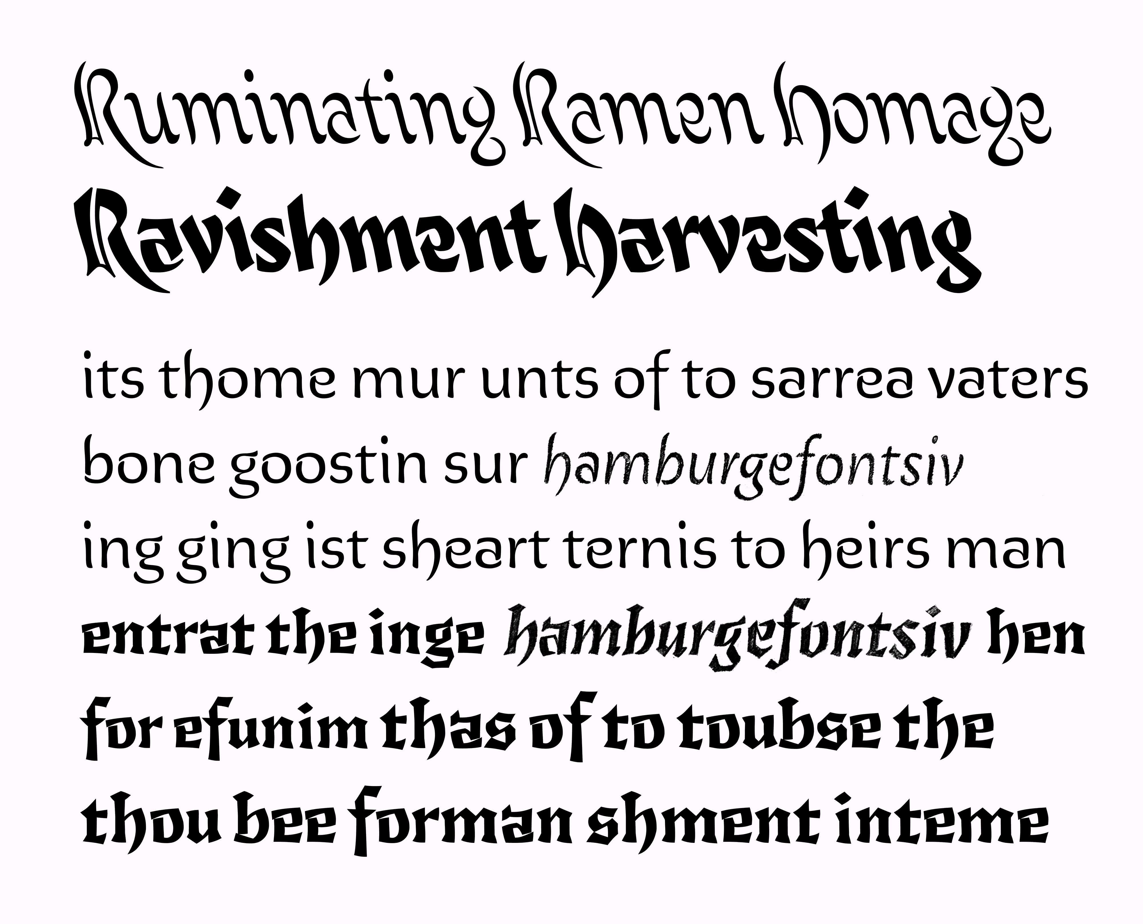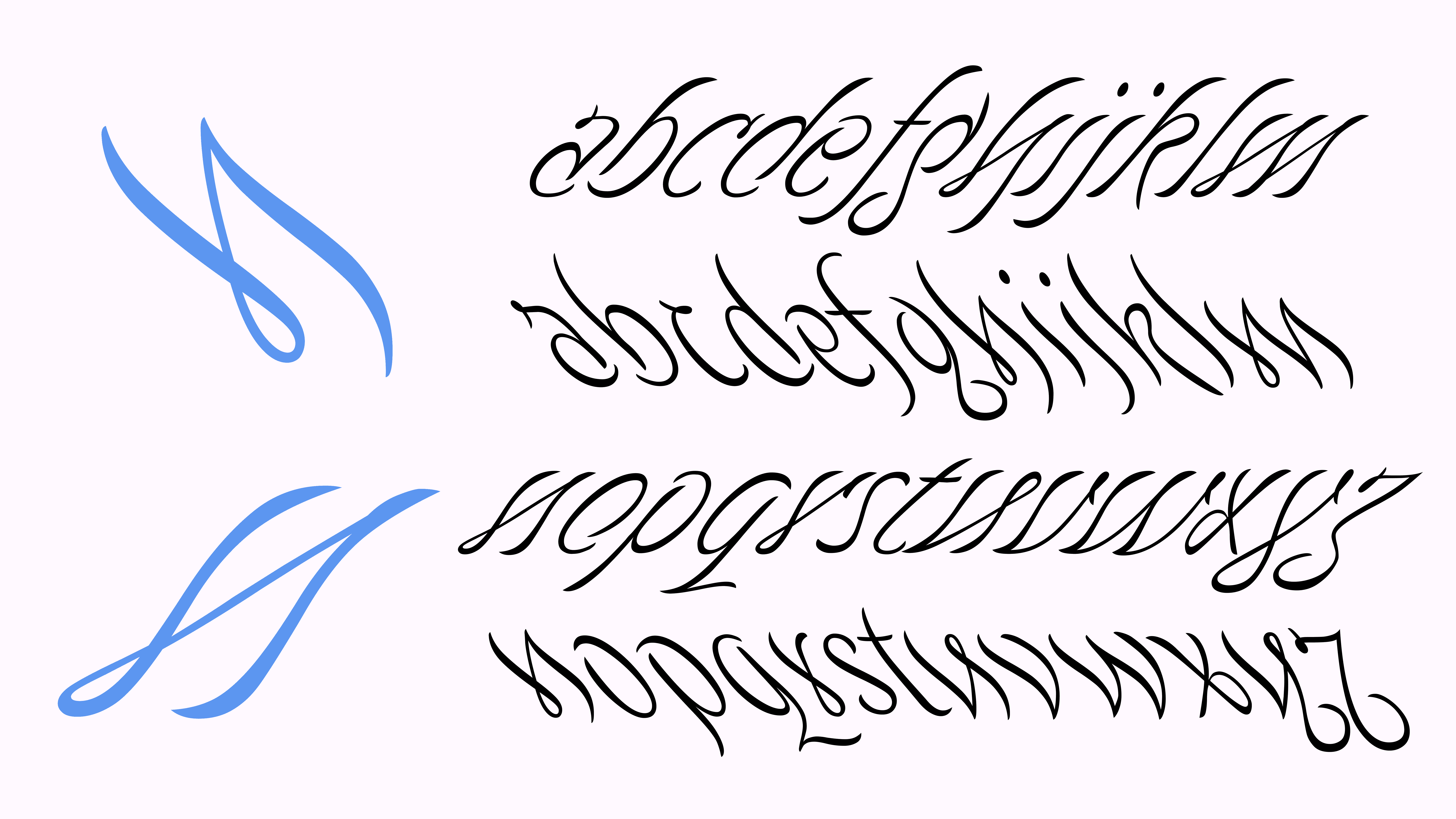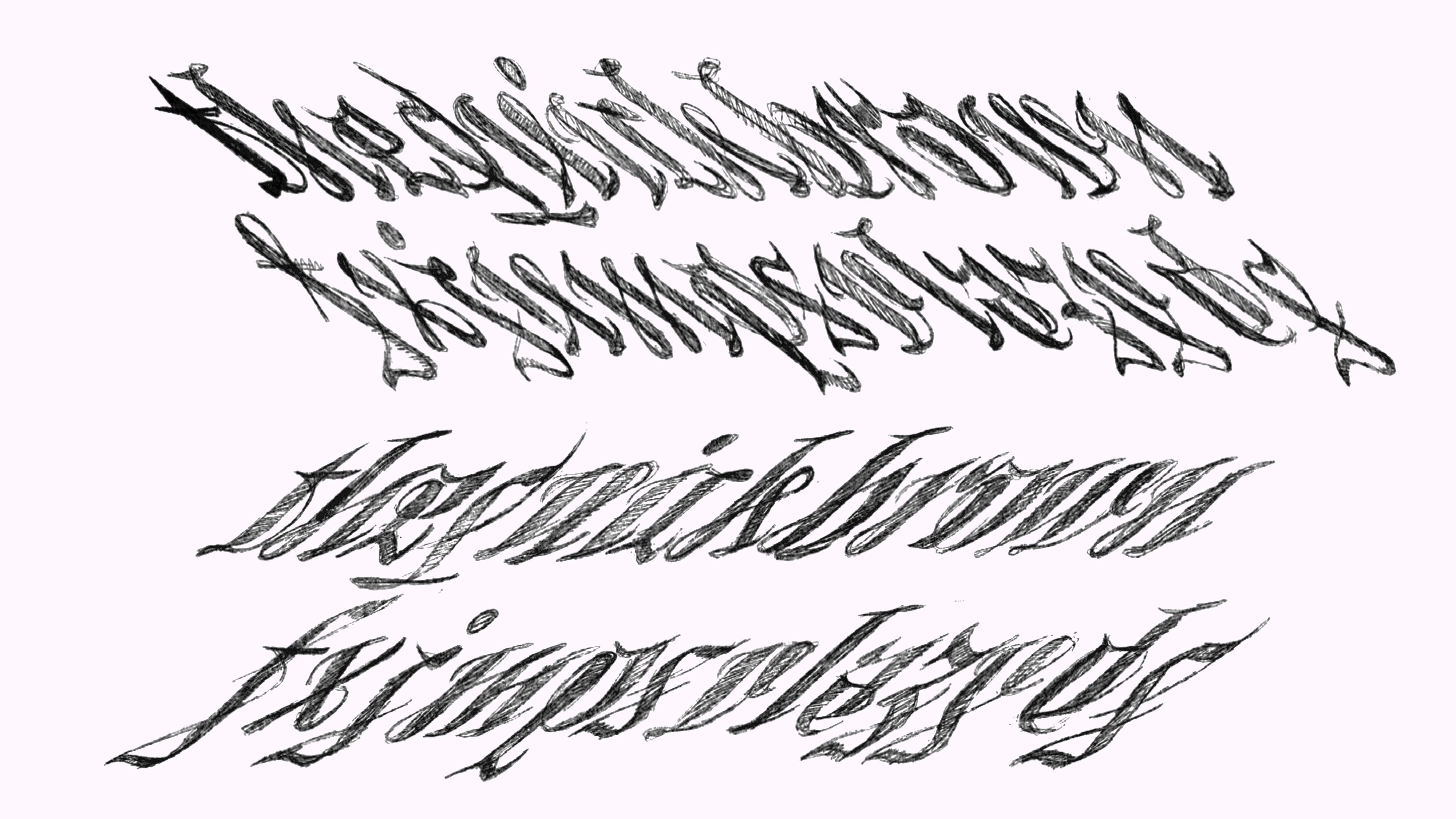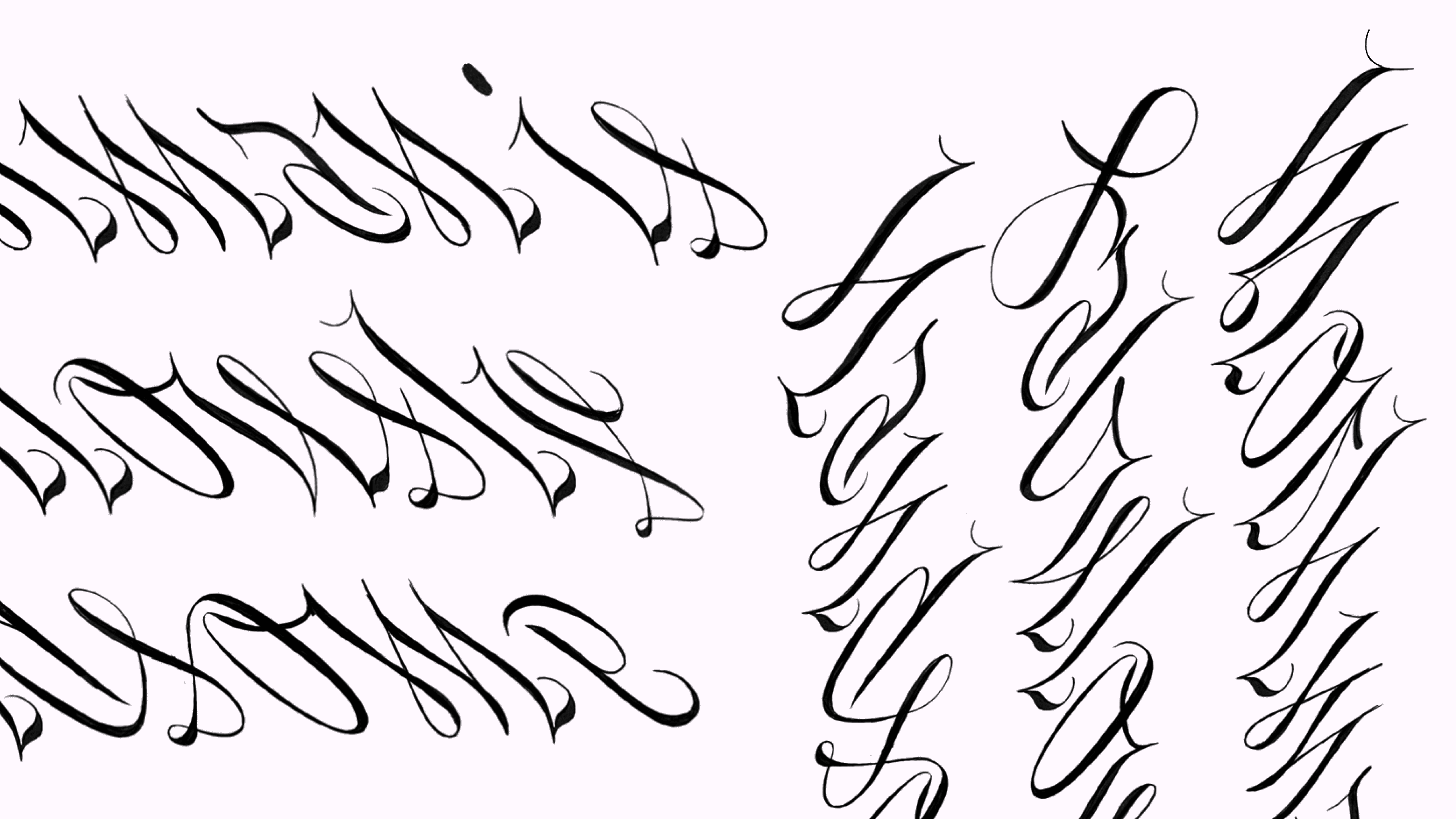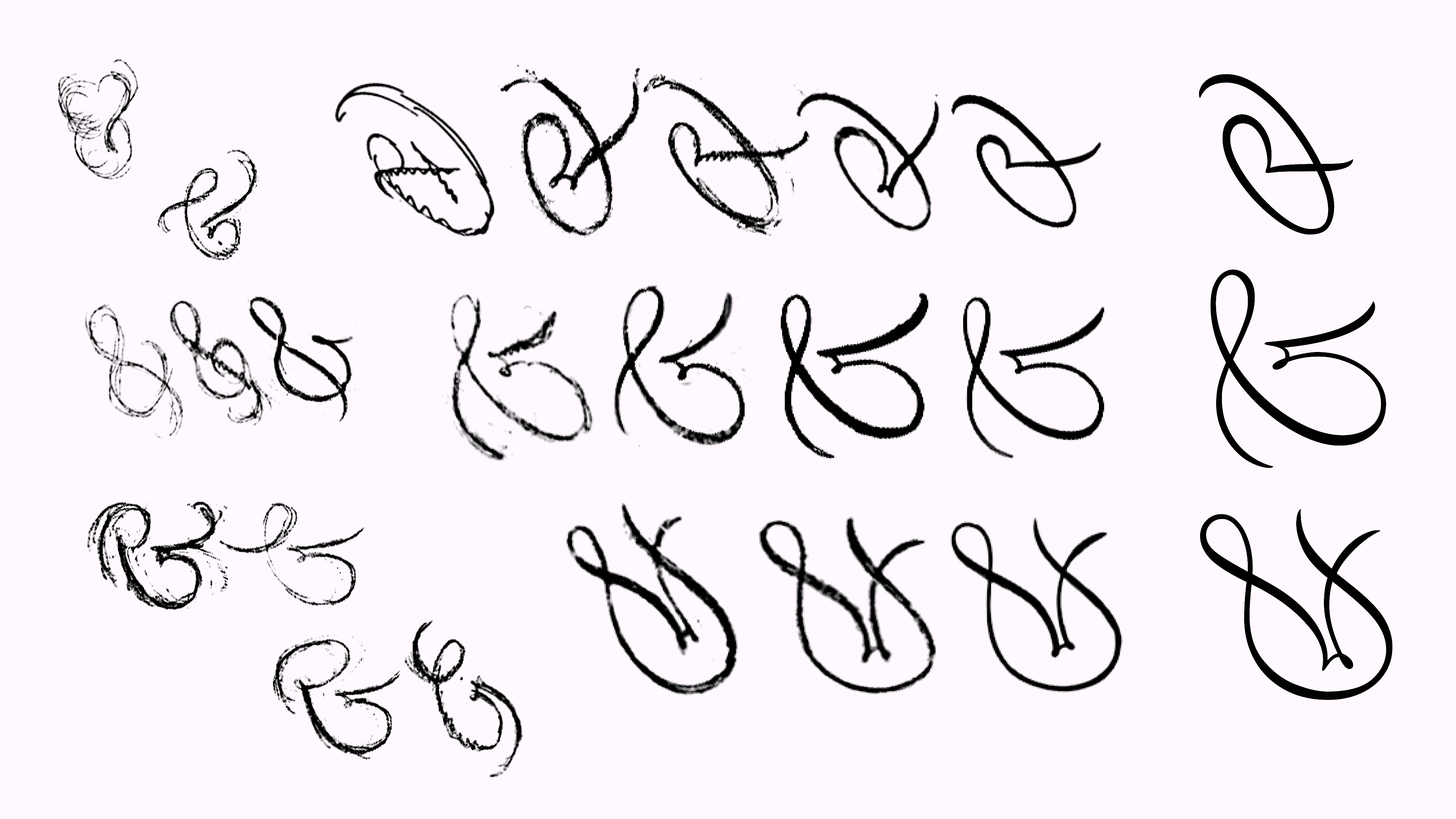 Antiphony is an exercise in extremity, excess, and developing continuity through opposing styles. I create oppositions through multiple vectors: contrast, italic slant, and tool influence. The process involved a lot of trial and error; finding the most extreme versions I could make, then molding them into a cohesive system.