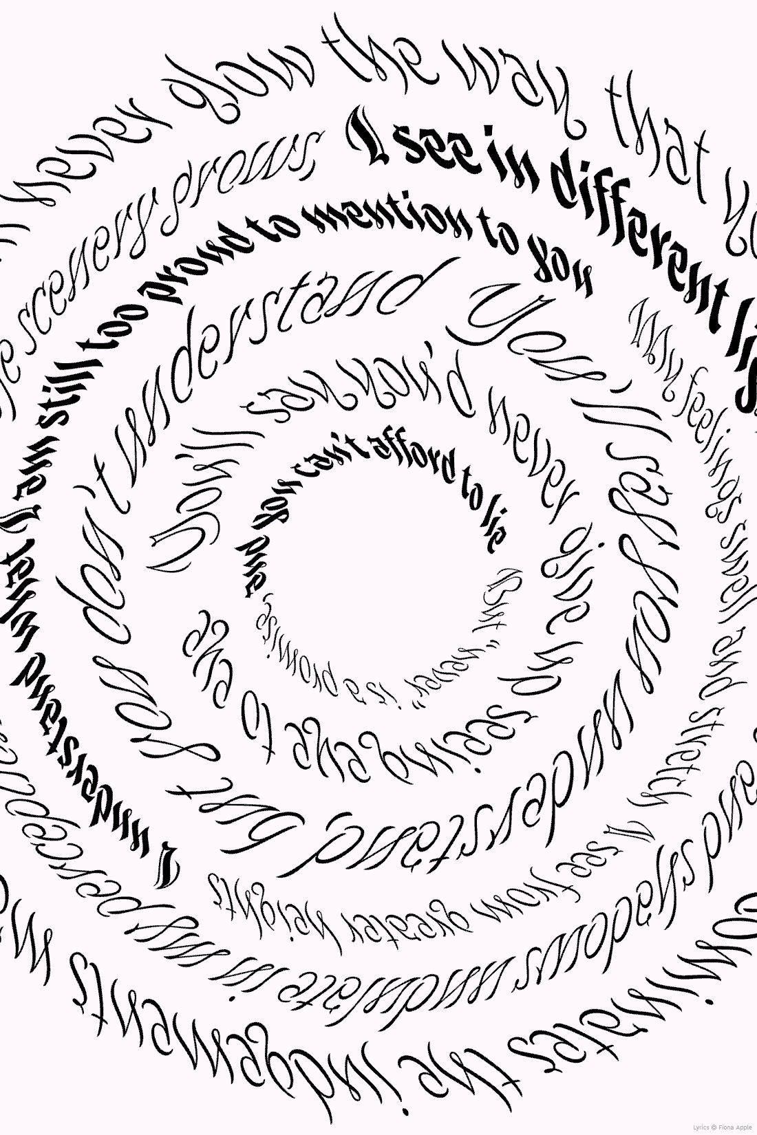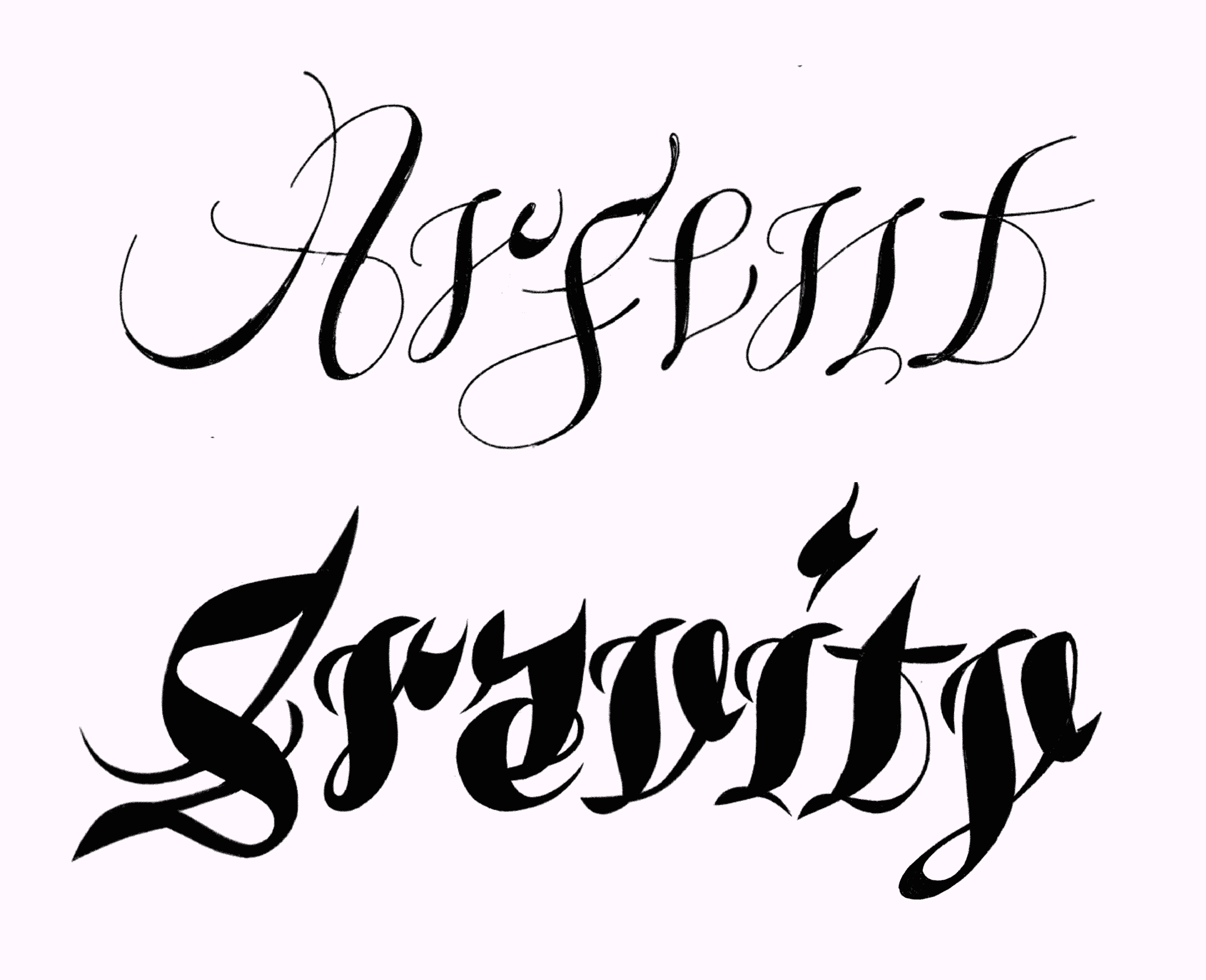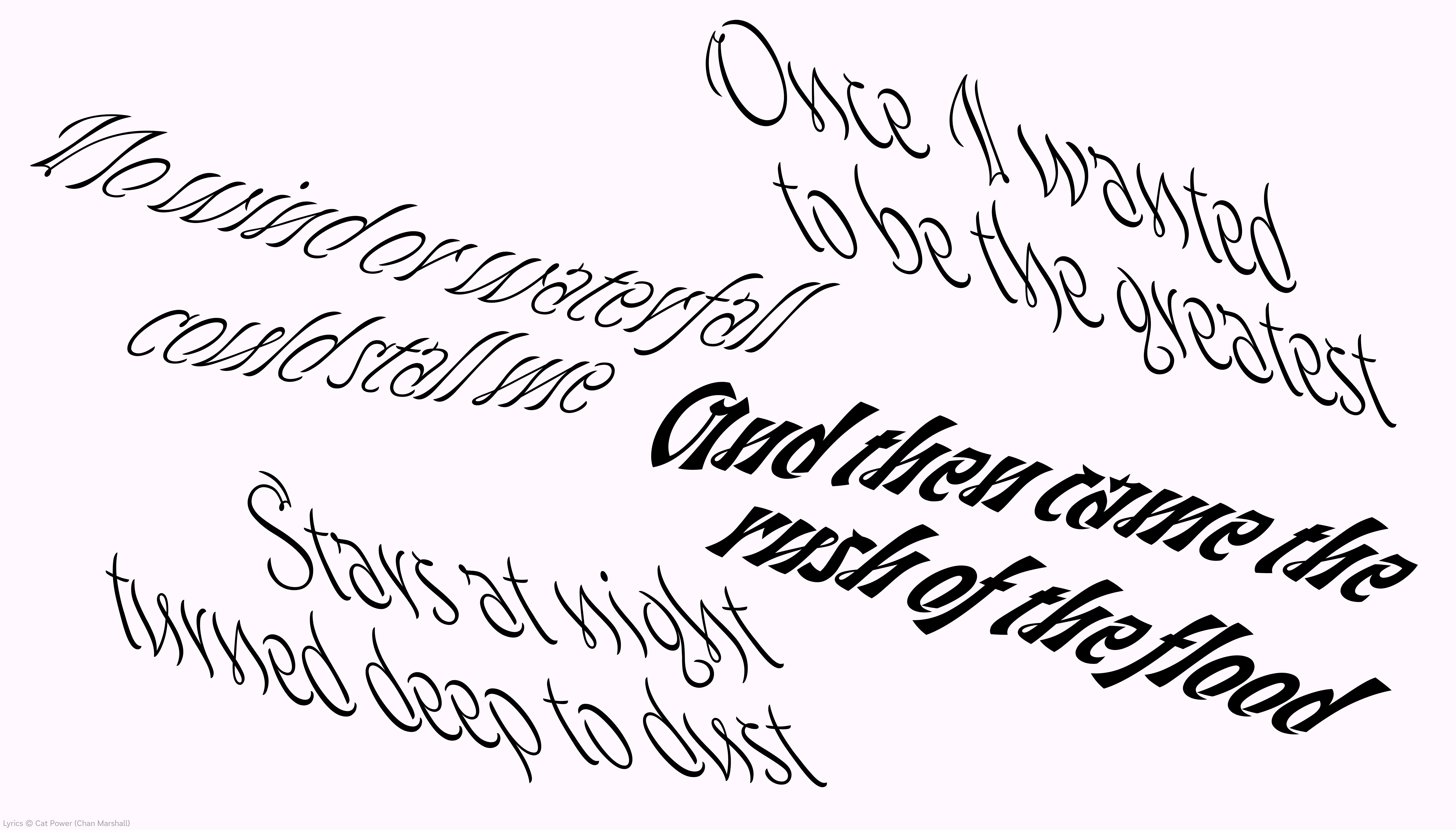 The word Antiphony describes music that is sung, recited, or played alternately by two groups, usually in church music. My project is all about opposition, so I felt that the name fit pretty well. For the specimen, I wanted to see how I could create dimensionality with the styles and utilize its fluid qualities to set lyrics and poetry.
