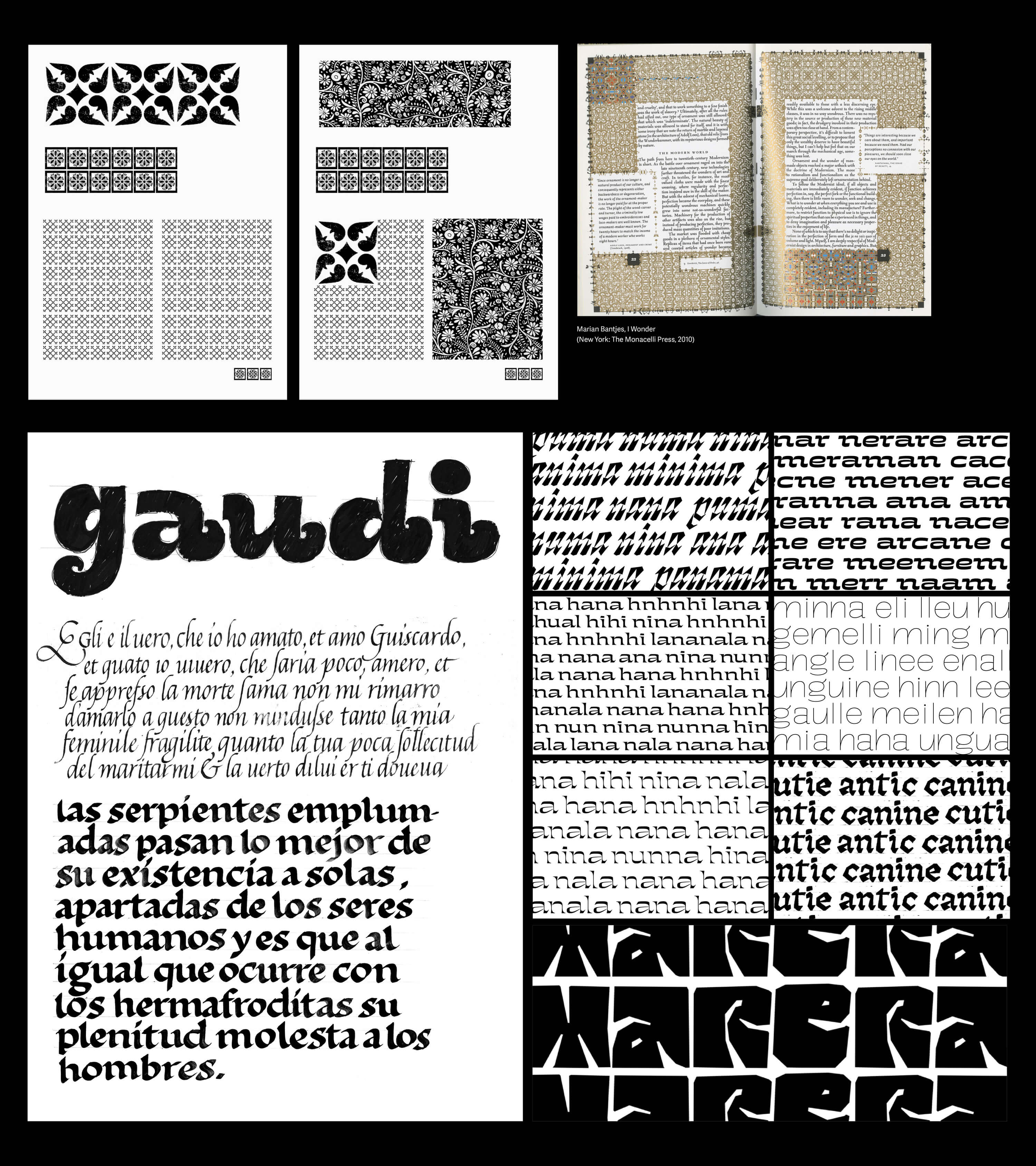 Much of my experimentation revolved around those ideas: patterns, texture itself, and texture in text.