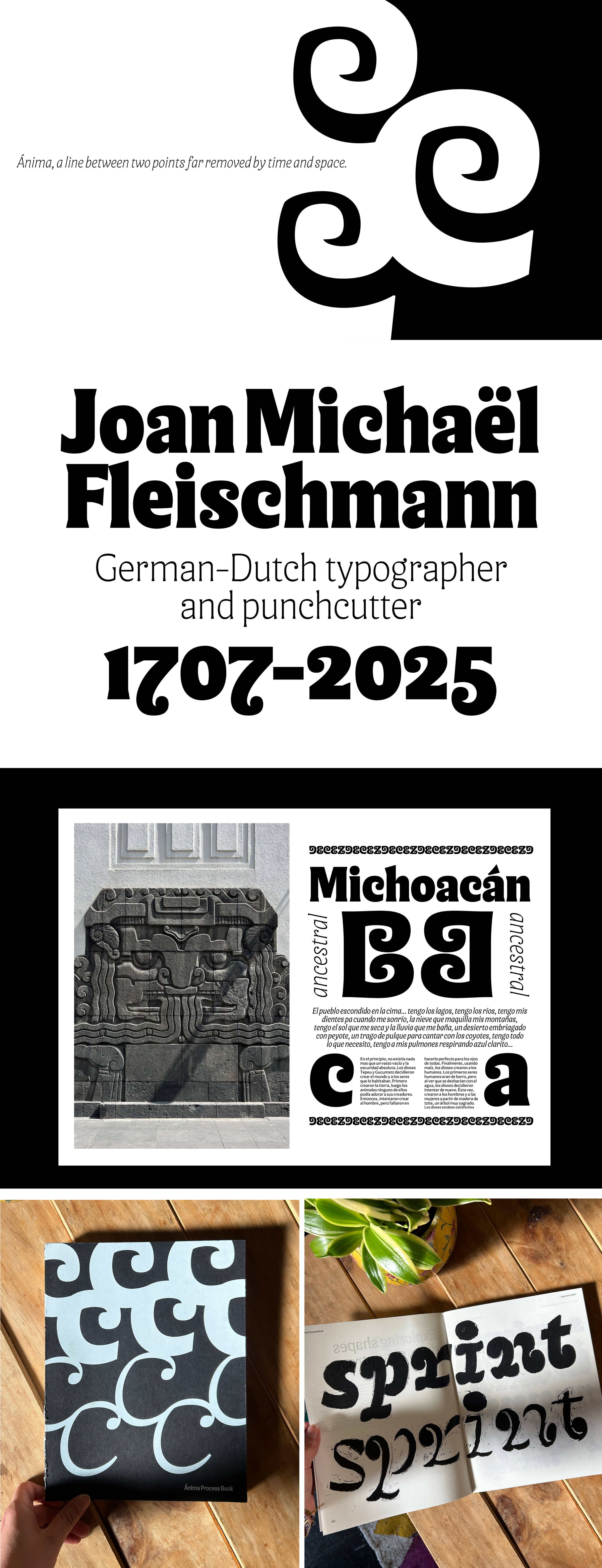 In Erik van Blokland words, “anima is a line between two points far removed by time and space.The attempt to interpret Mexican cultural and artisanal references through the lens of an 18th-century German punchcutter living in Amsterdam might seem unlikely, but along this process it became a natural, unquestionable perspective.”