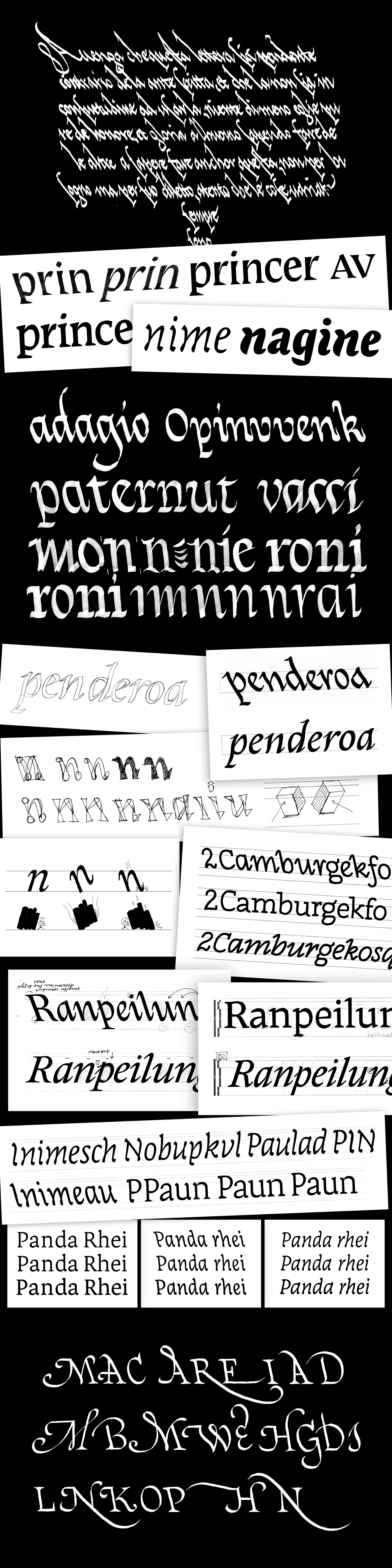 The final design leaned into the unconventional. The italics carried rather unusual stroke shapes, yet they stayed true to the logic of the construction principle. What began as an exercise in creating a text typeface with two matching italics evolved into something with its own voice—a typeface with dynamic complexity, showing its calligraphic roots while being well readable in long texts.