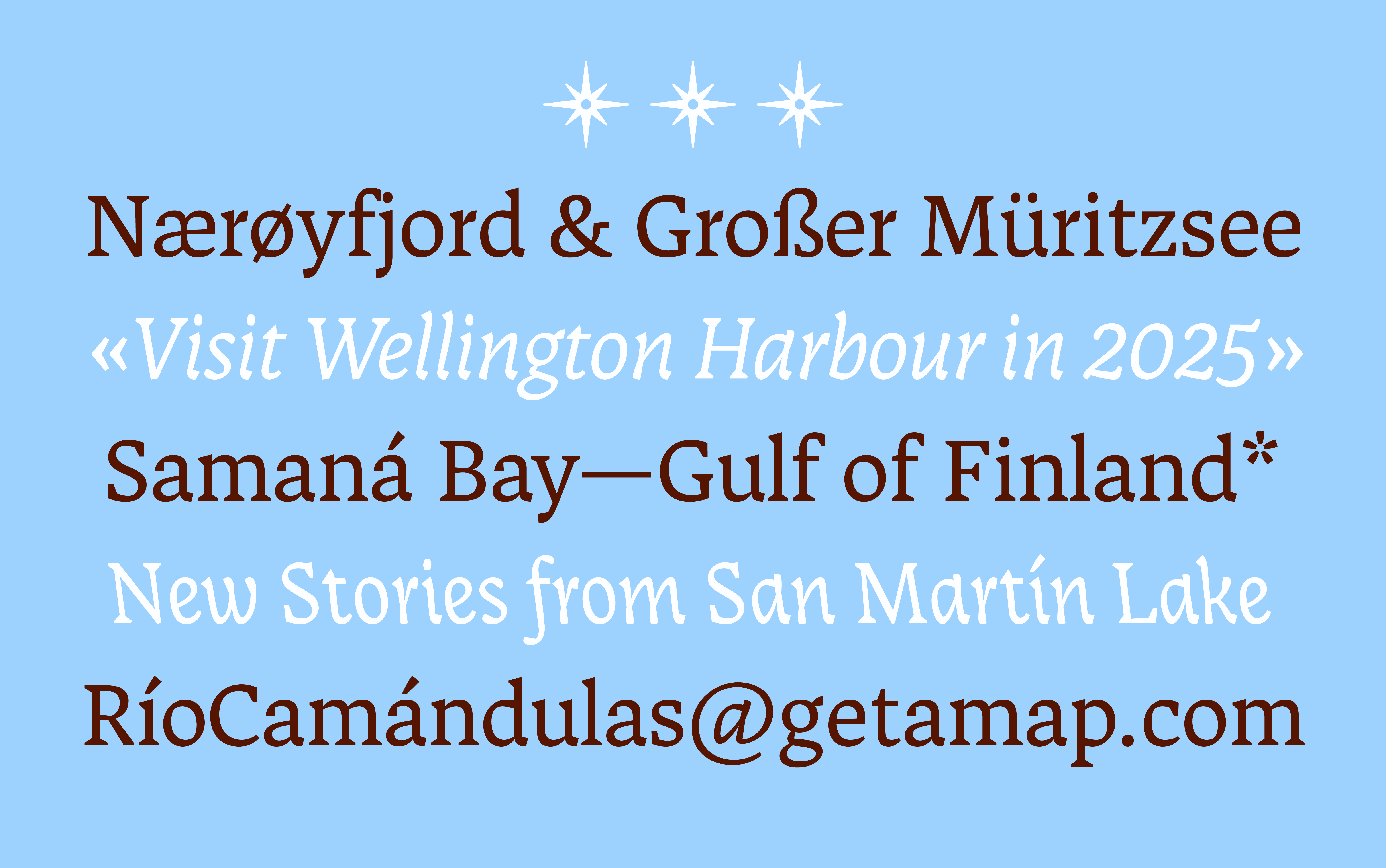 Of course, it wouldn’t have been real if it wasn’t for the challenges. It was tempting to take the easy route and simply slant what already existed. I knew that too much eccentricity would overwhelm the reader, while too little would make the design lifeless. After all, my creative escape was the last style that followed the family: the reverse italic display. Inspired by Renaissance maps and the work of 16th-century cartographer Gerardus Mercator, it brought elegance and personality to the family, suited for large titles and refined logotypes.