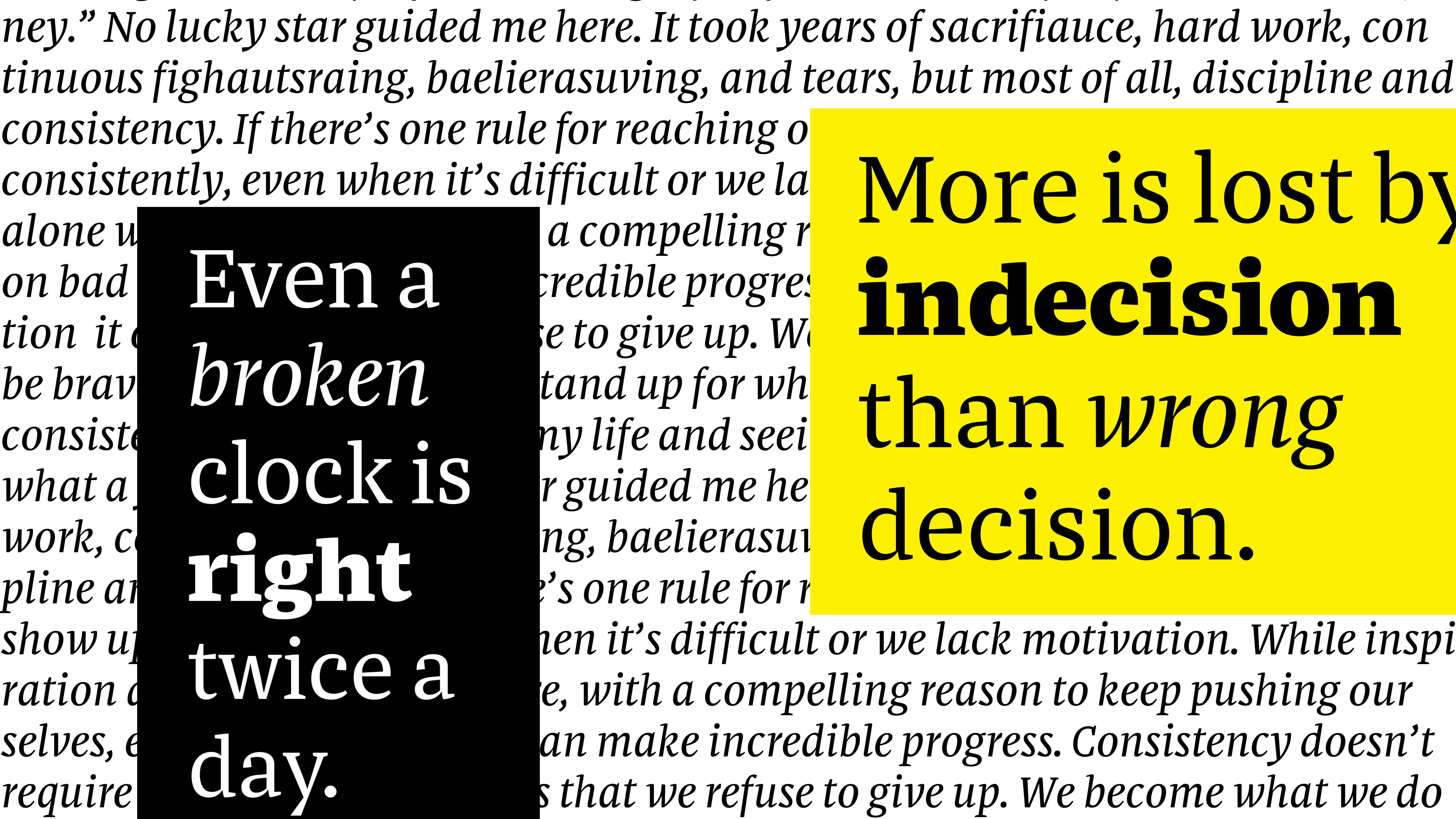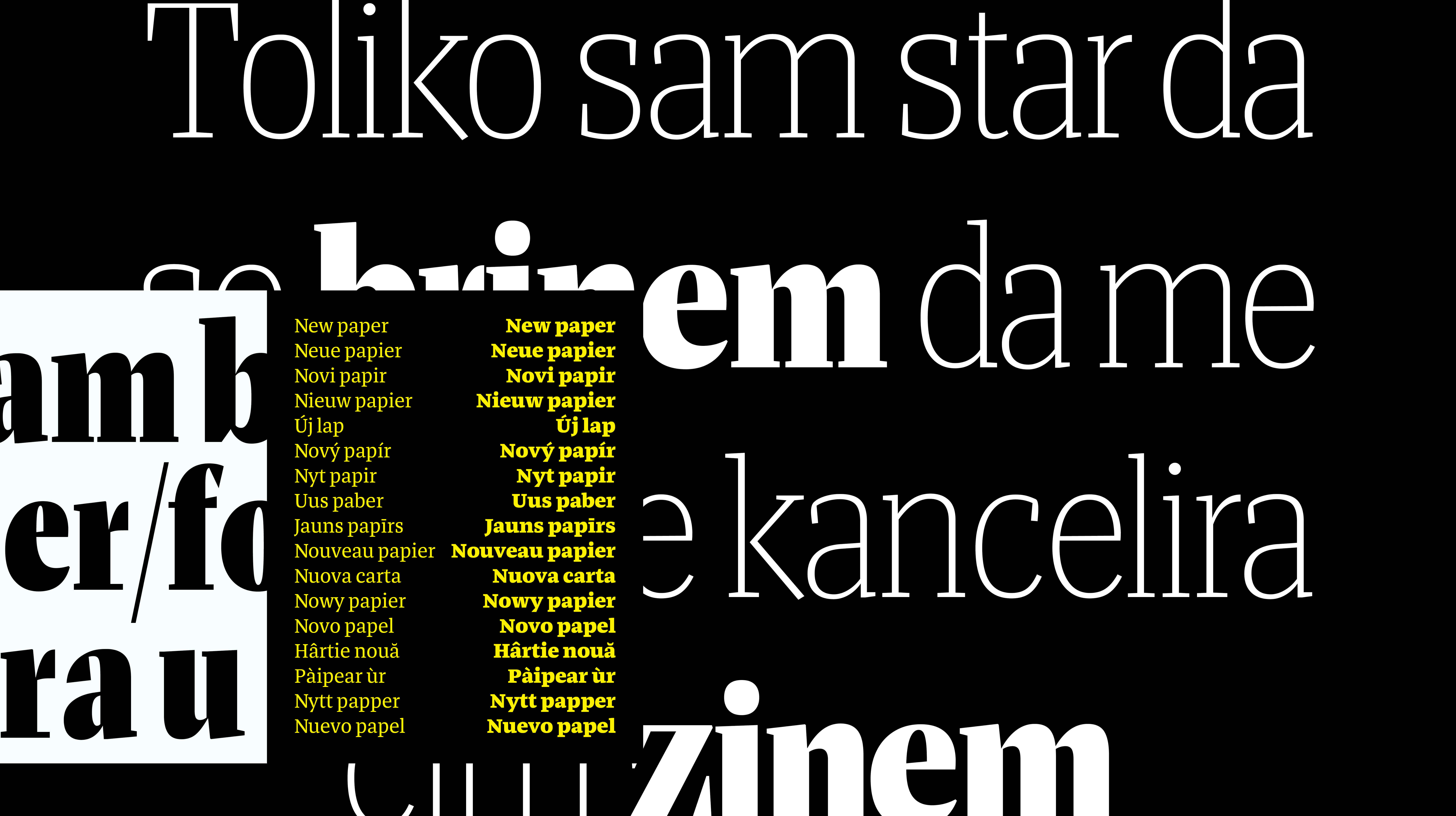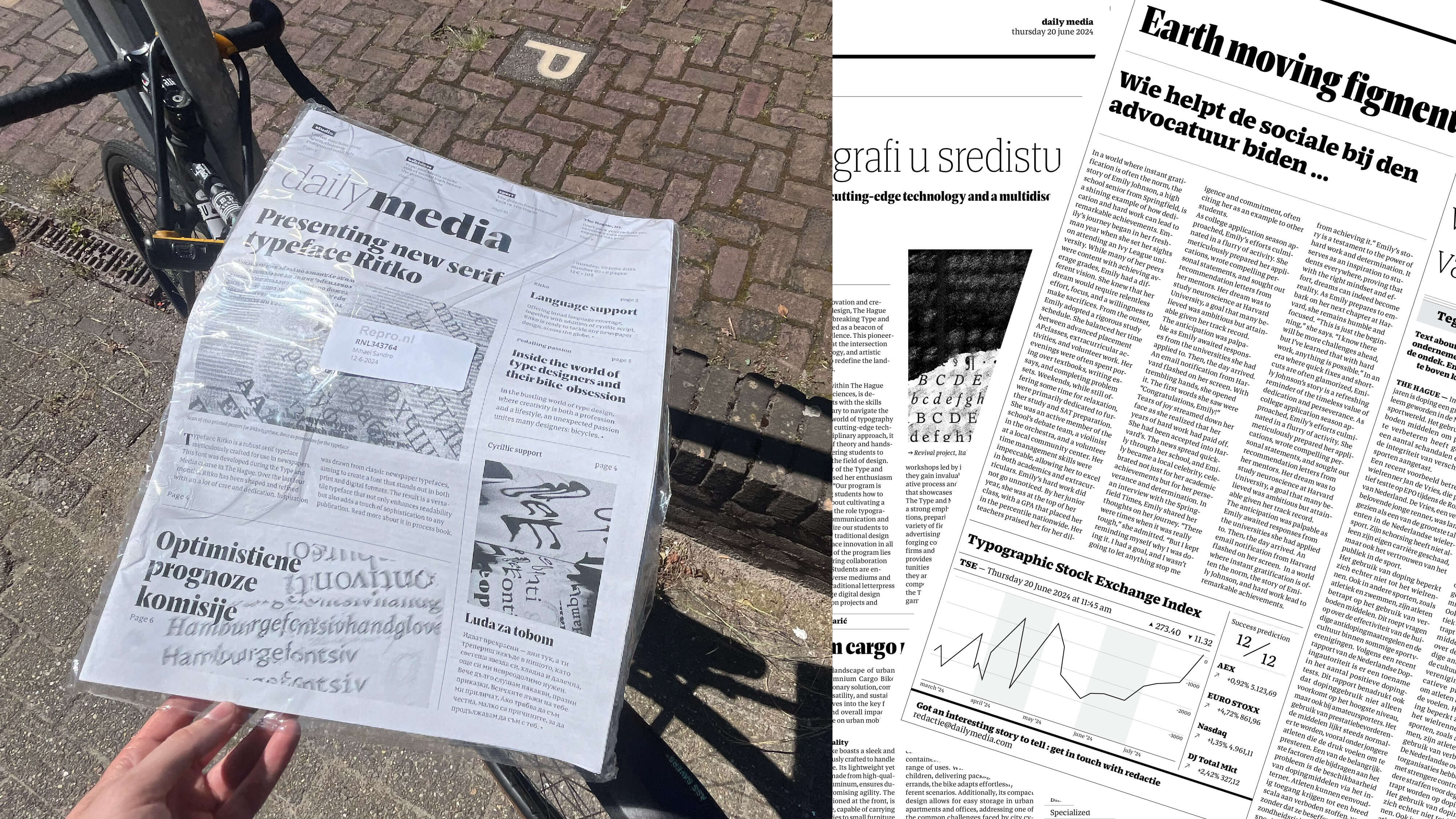 Ritko, drawn with purpose, is a typeface system for newspapers. Over the course of the year, Mihael explored all aspects of editorial typography. He chose to work with newspaper type and quickly realized that the challenge was no longer about poor print quality but about defining the appropriate expression. This transformed the challenge he had undertaken and led him to explore every facet of editorial typography. He adopted a structured approach, conducting thorough research into the typographic needs of the medium and performing proper proofing to ensure he was focusing on the right details. The result is a calm and trustworthy typeface that is highly legible even in small sizes.