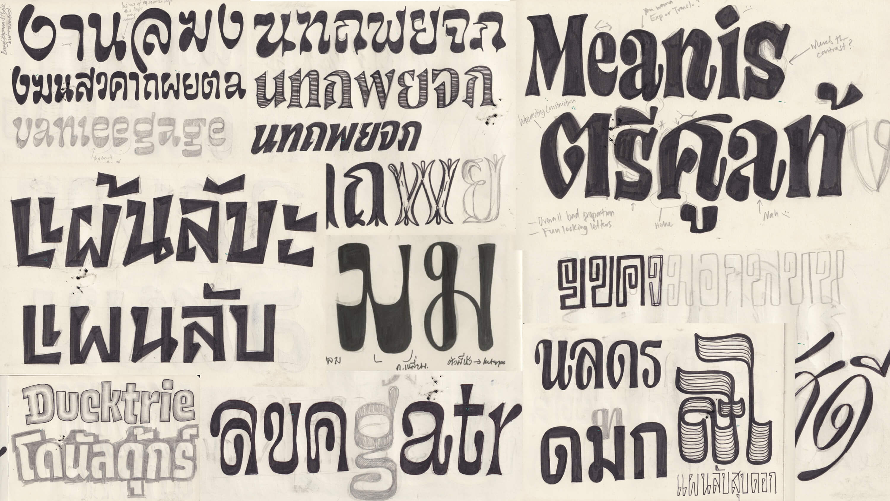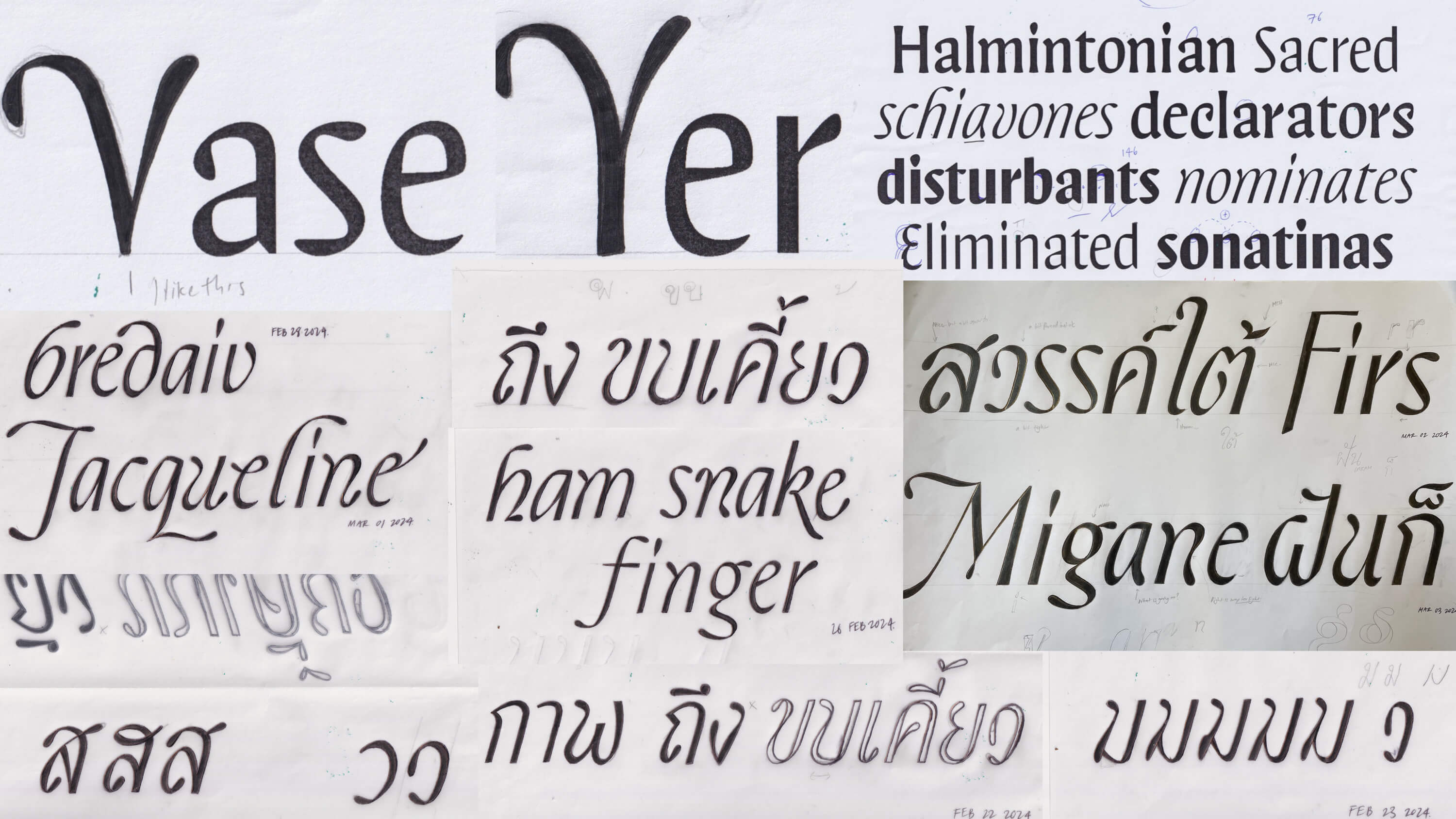 The project started with a Thai italic drawn alongside a Latin italic. The initial Thai
