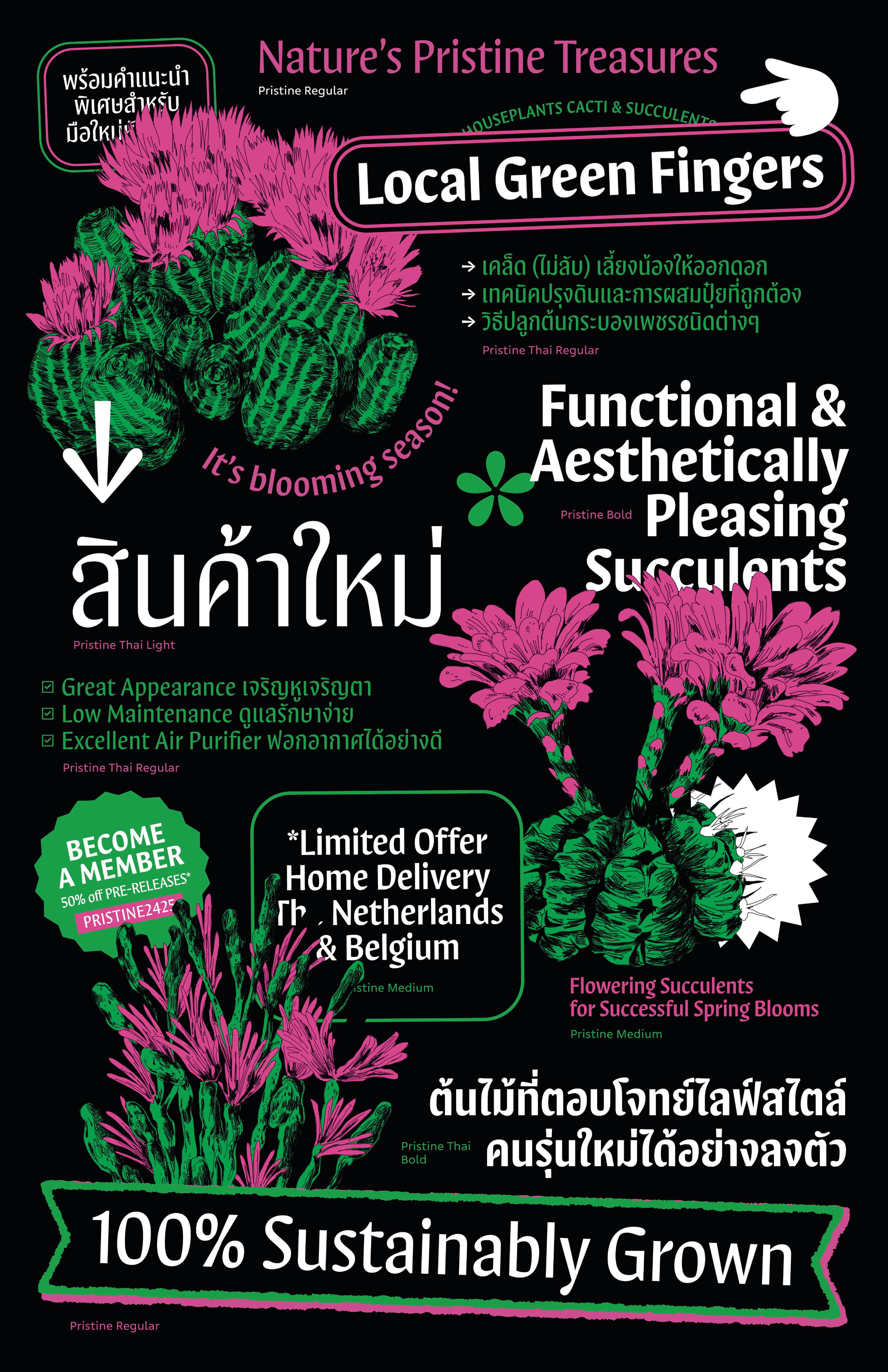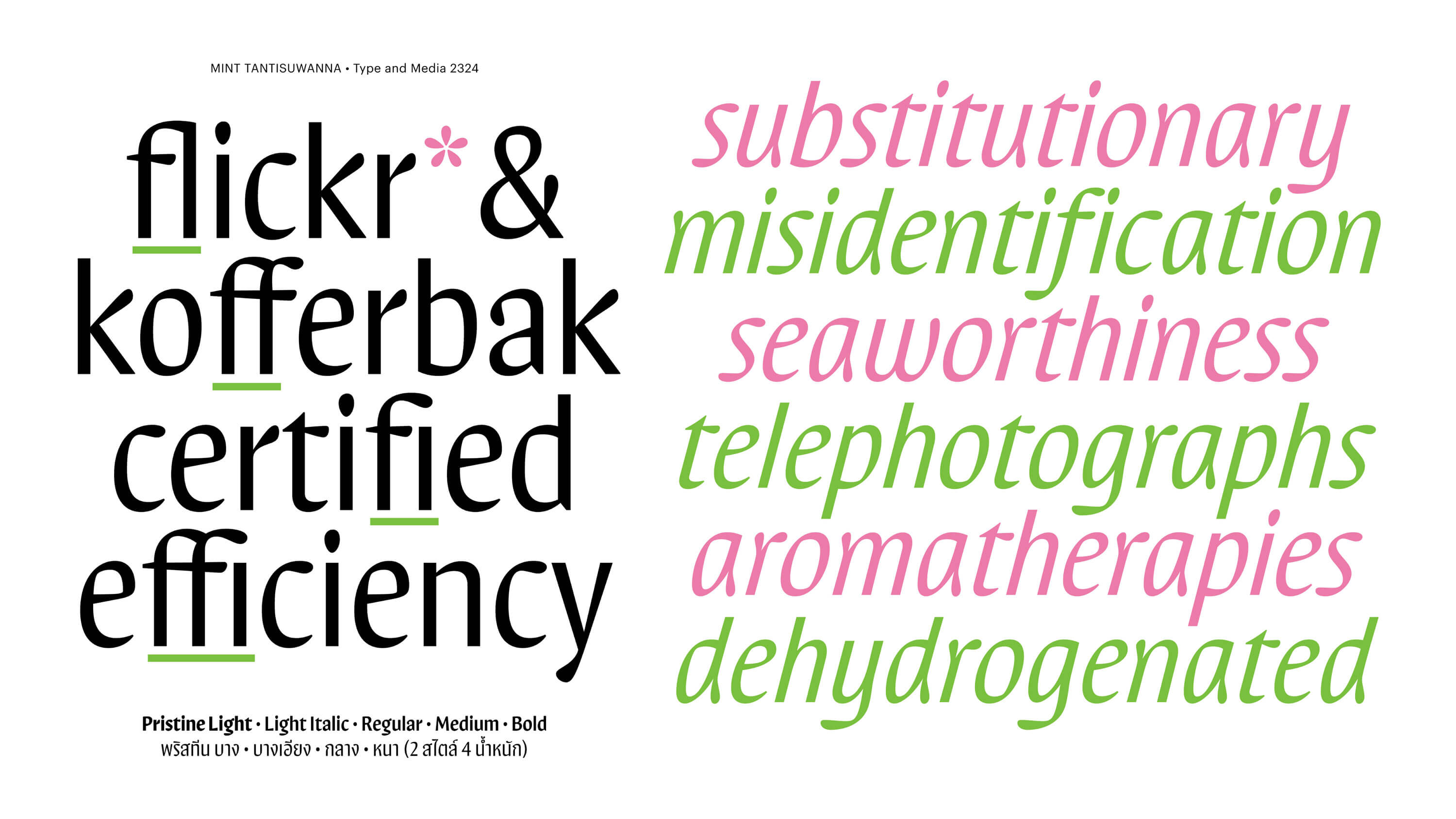 Pristine was designed to move away from that traditional Thai blackletter tone. The goal wasn’t