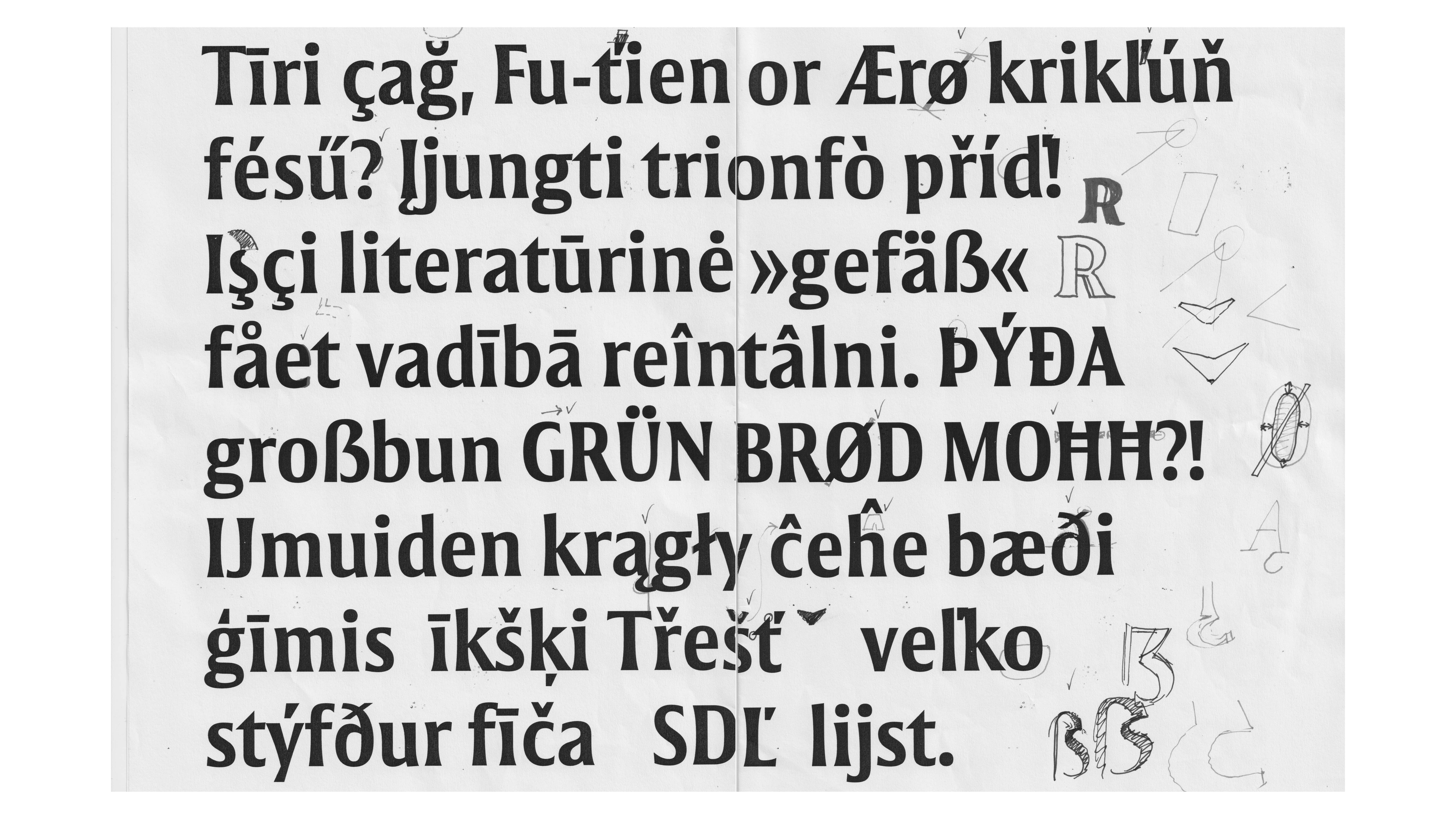 31/05/2024. Feedback from Paul Barnes. Harmonizing the color between straight and round letter. The shoulders are now heavier to match better the flared serifs, the contrast is lower and more in translation.